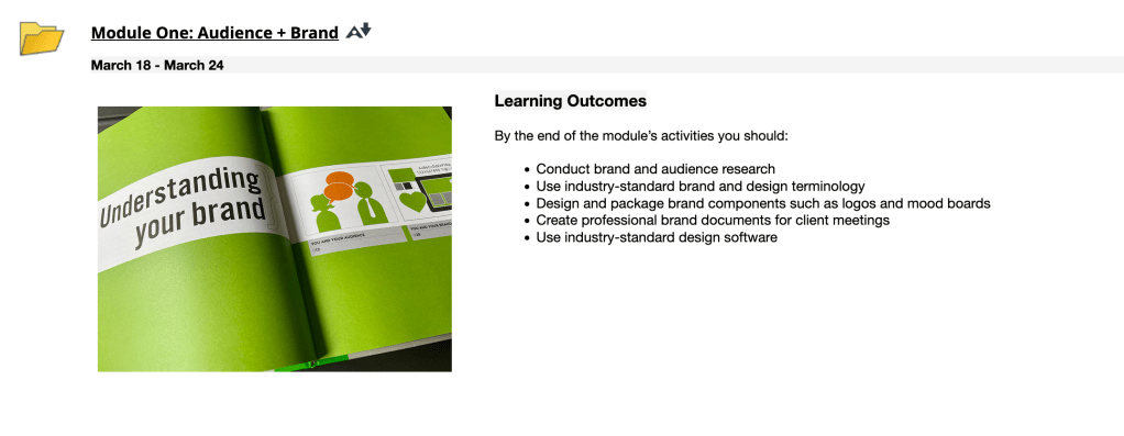 This was part of the anxiety I felt. If you see a great design it goes unnoticed, but you see a bad design it sticks with you. I didn’t want to produce bad designs and be known as “that designer” in the class. All joking aside, design is all around us and branding is everything.
